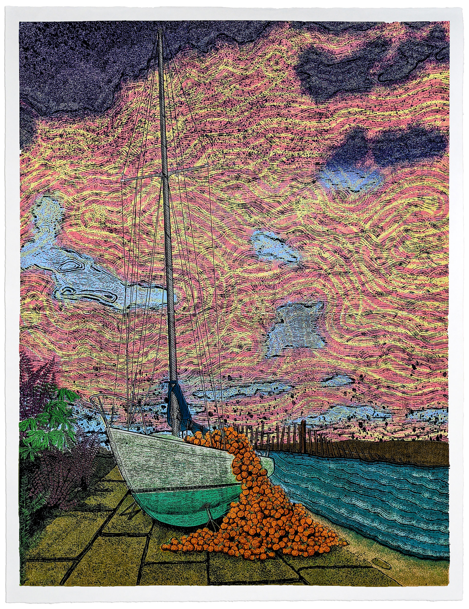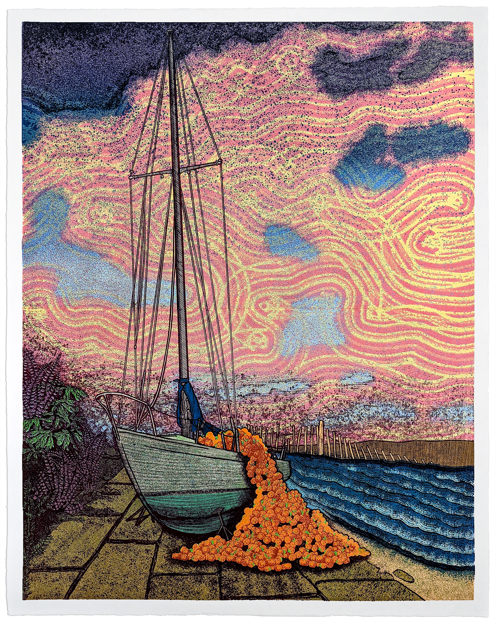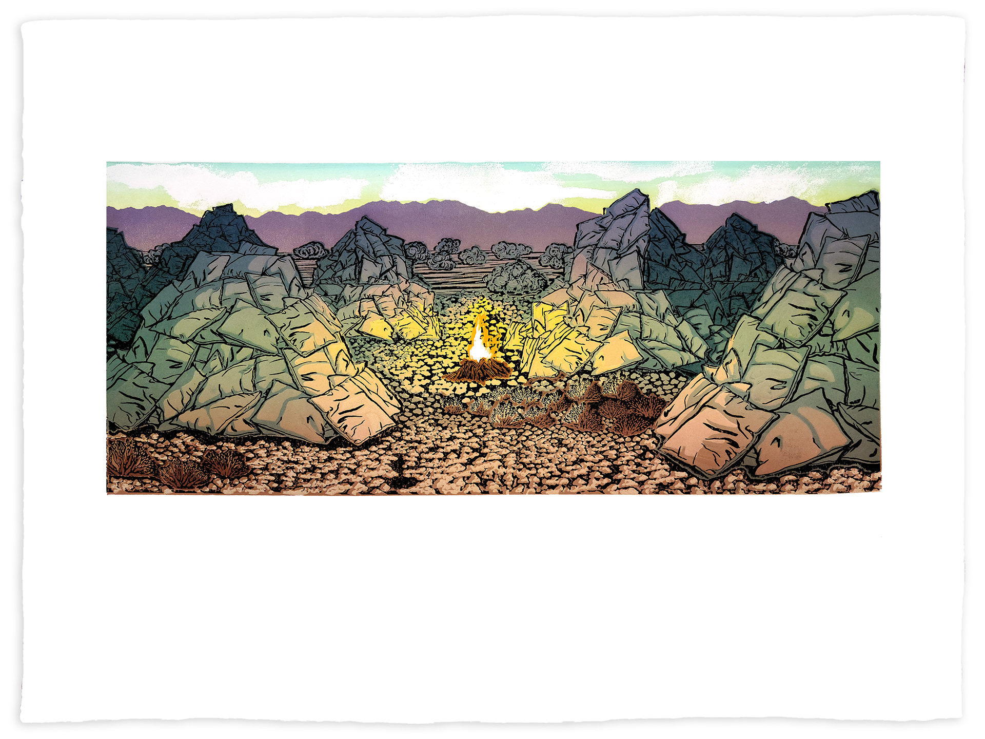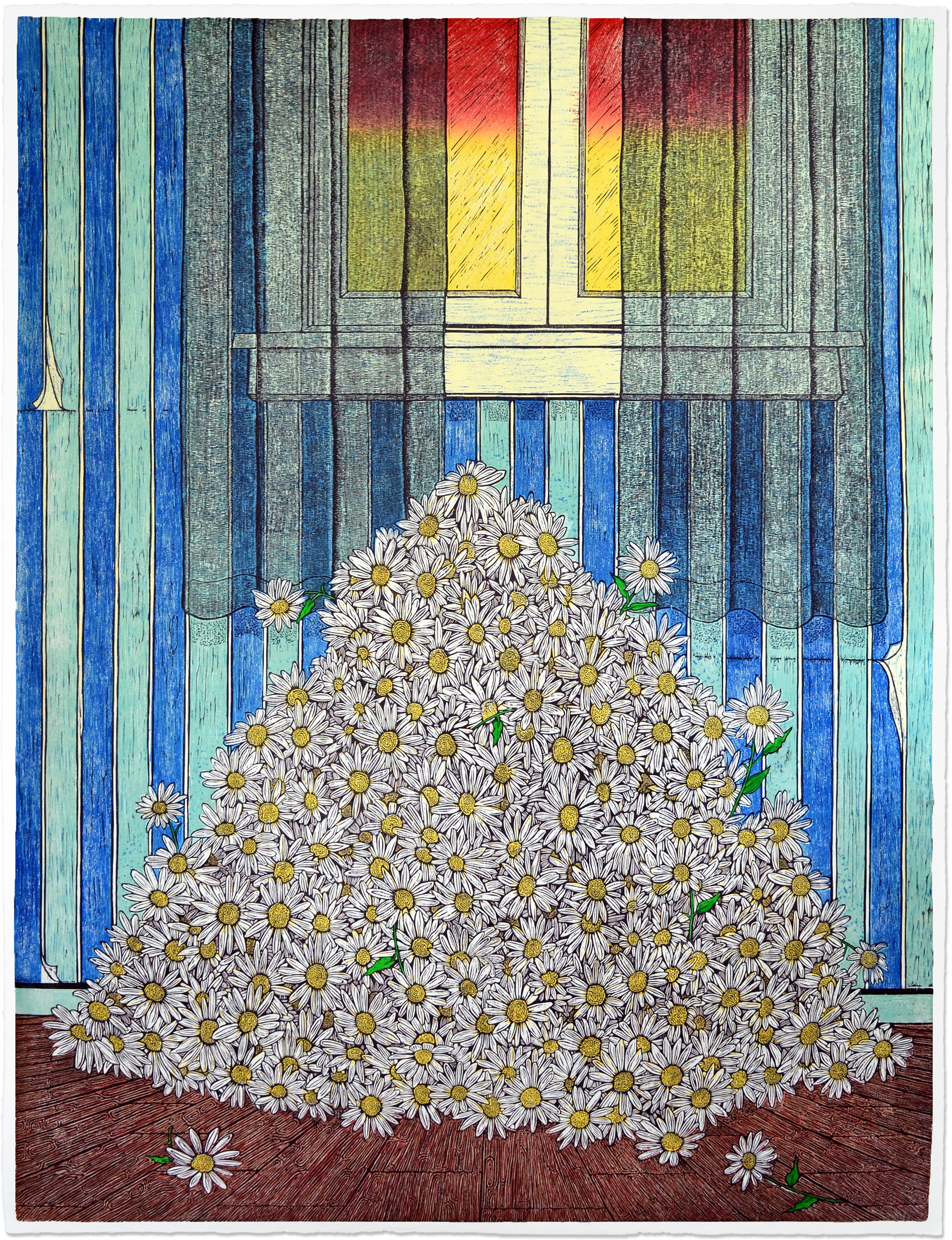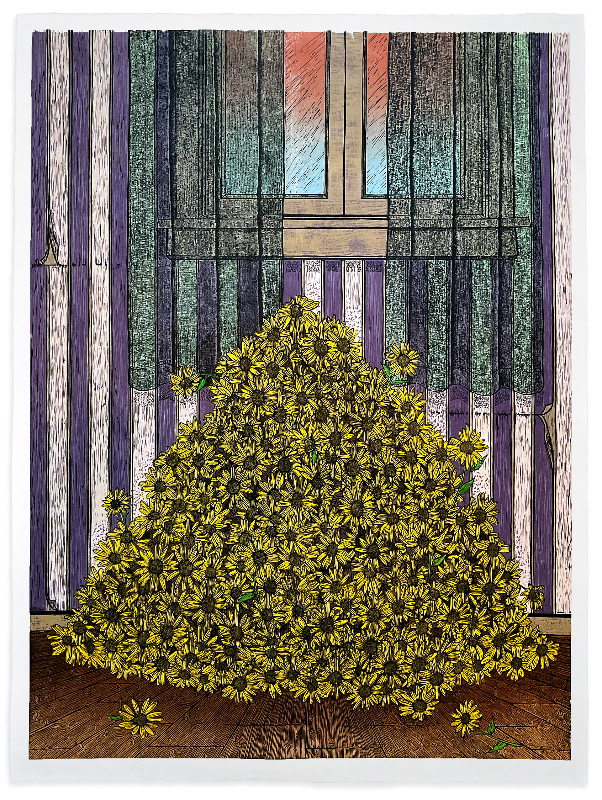 Woodcut on Kozo from 6 plates & 24 colors. 36x48in (91x122cm). 2022.