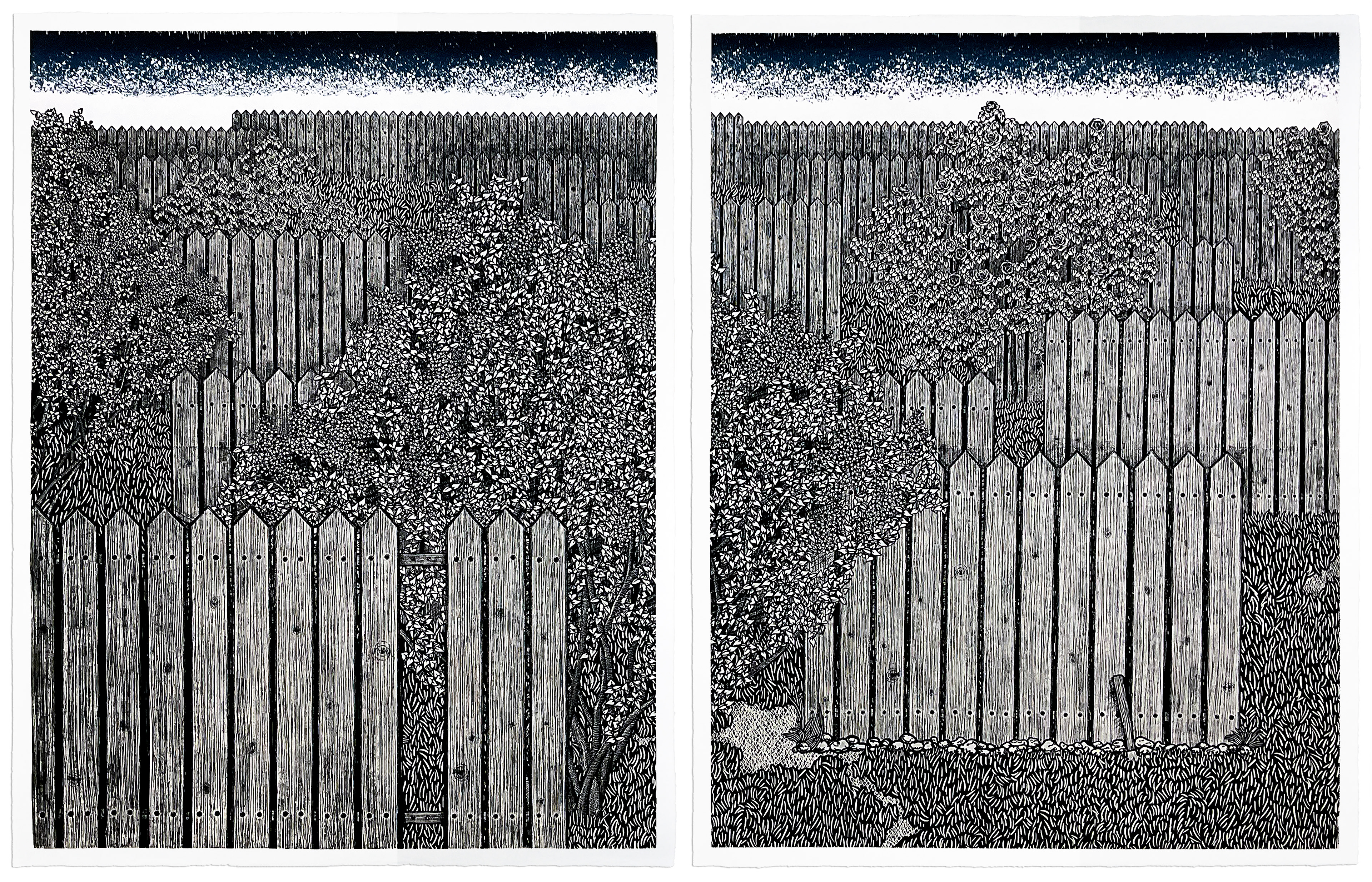 (Right) Edition 2. Woodcut on kozo. 11x17in (28x43cm). 2020.