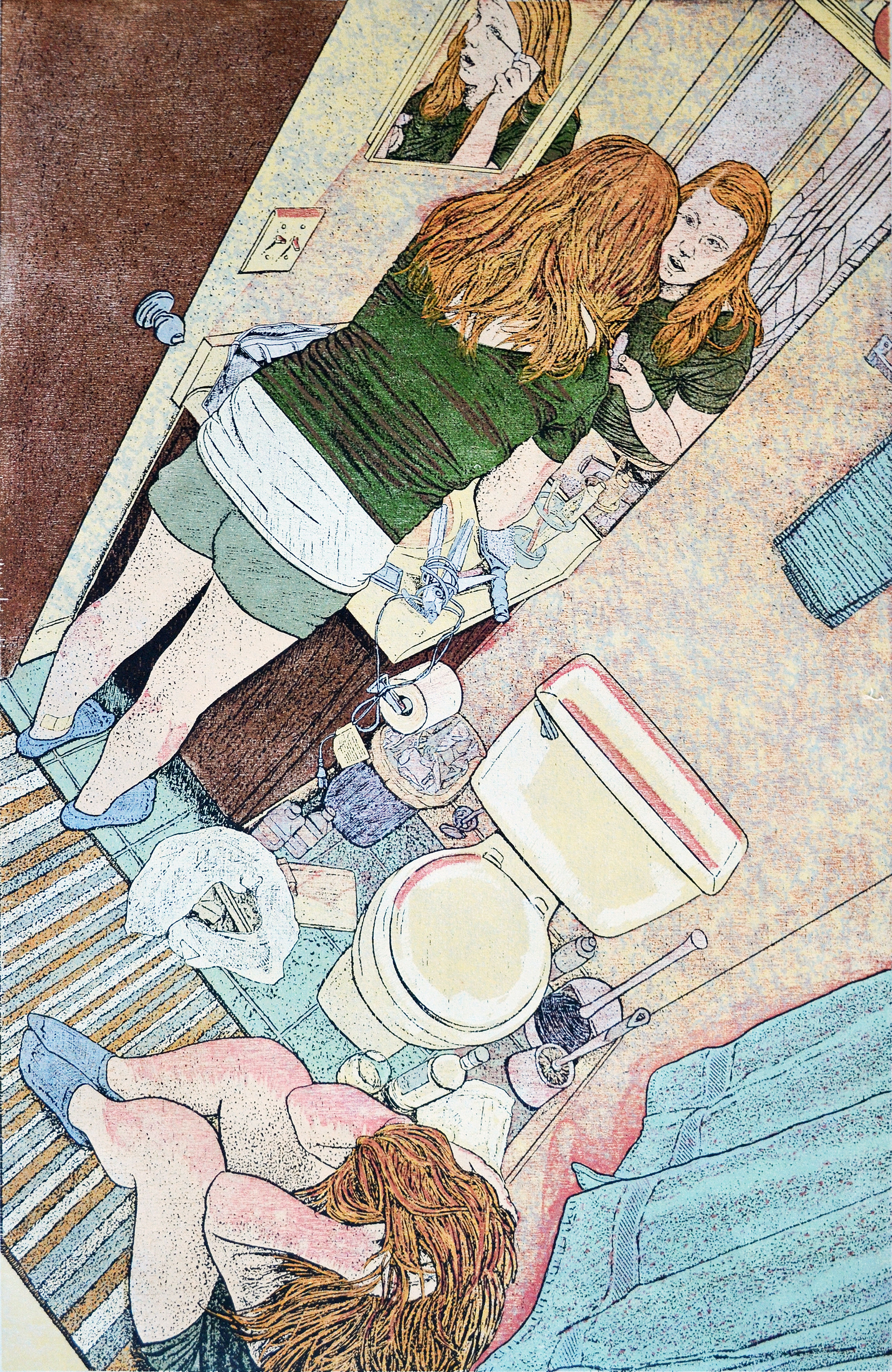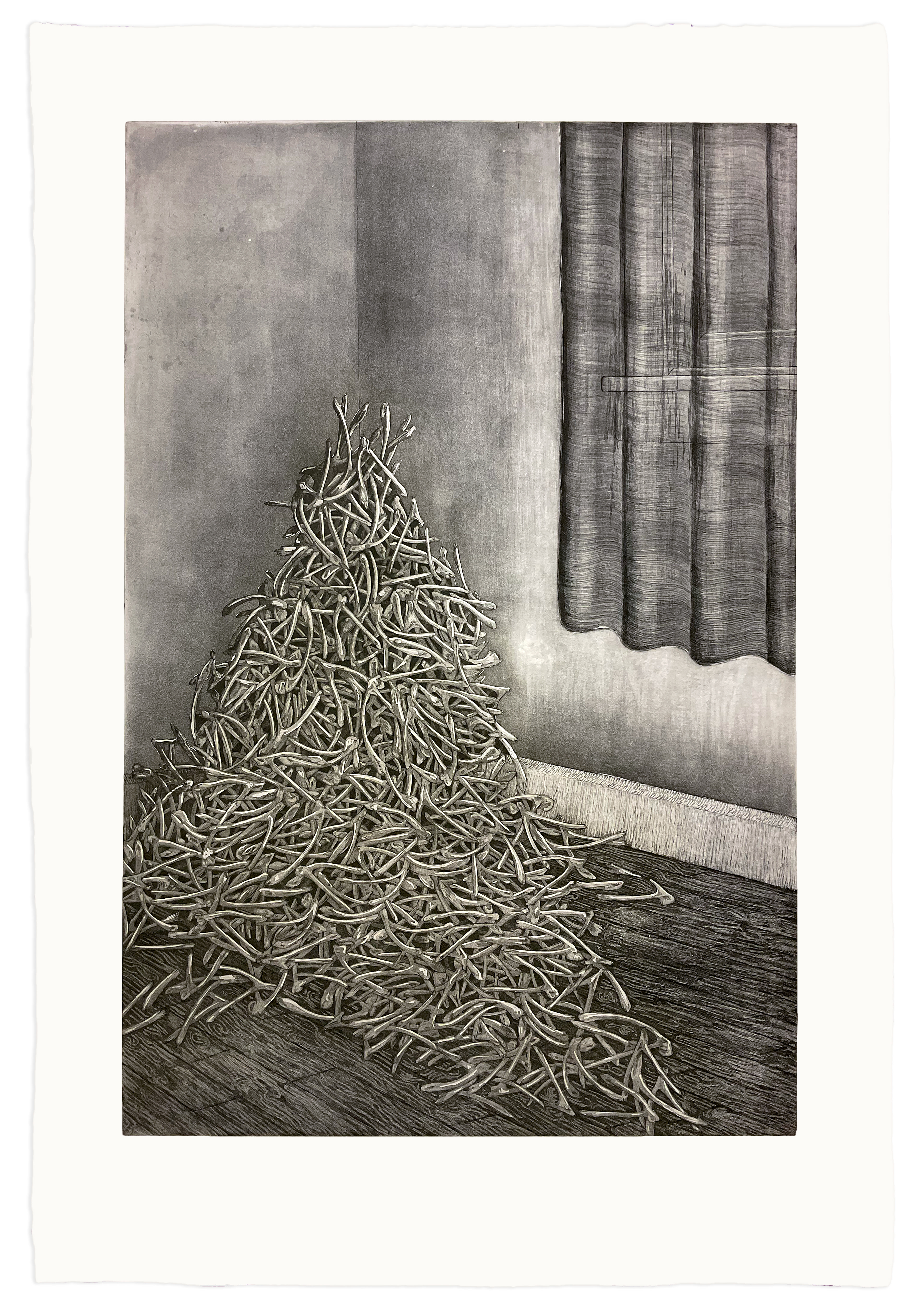 Etching on Hahnemühle Copperplate printed with 2 colors. 30x45in. 2023.
