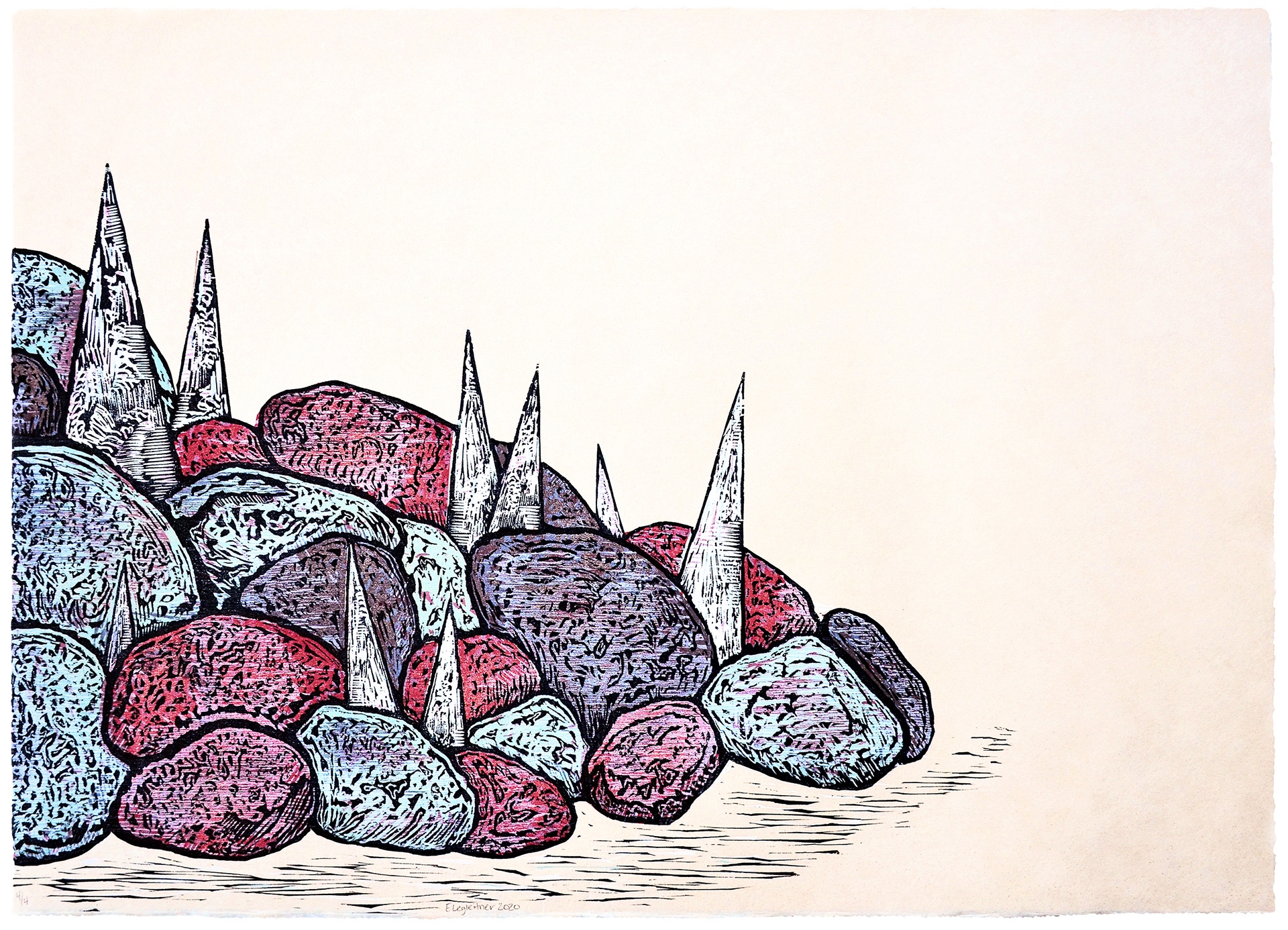 Linocut on Hahnemühle Copperplate, 22×28in (56x71cm), 2022.