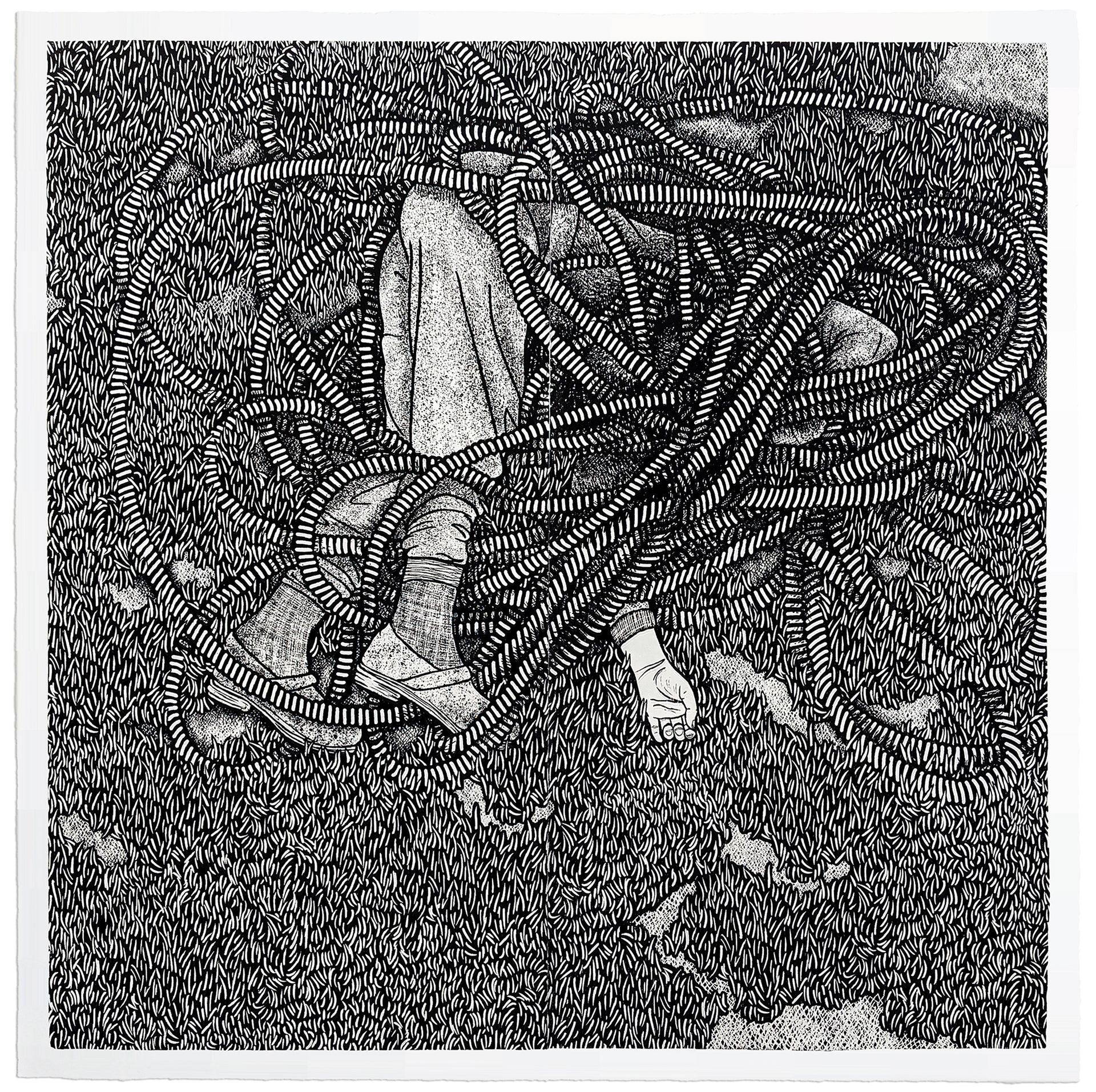 Woodcut on Thai Kozo. 48x48in (122x122cm). 2021.