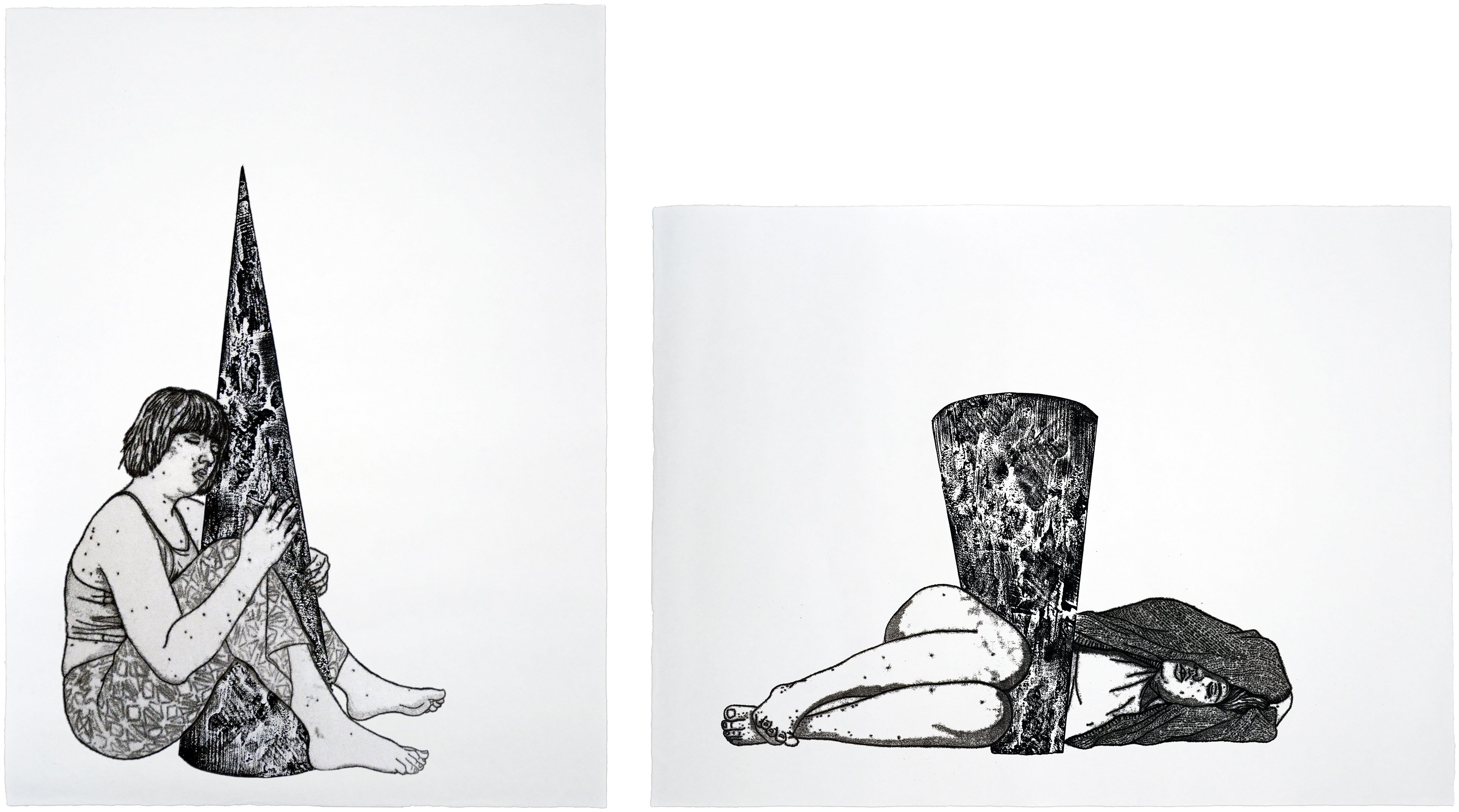 (Left) Edition 1. Woodcut on kozo. 15x20in (38x51cm). 2020.